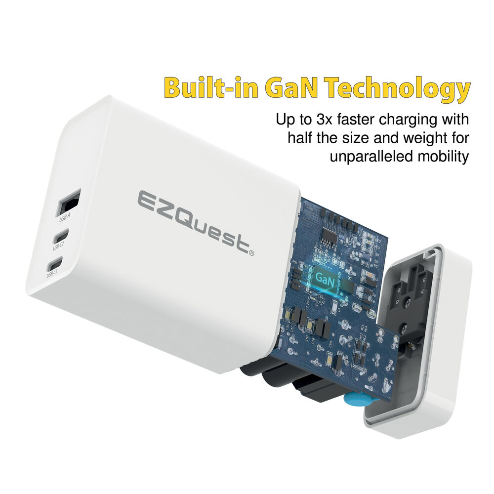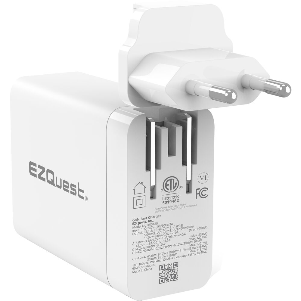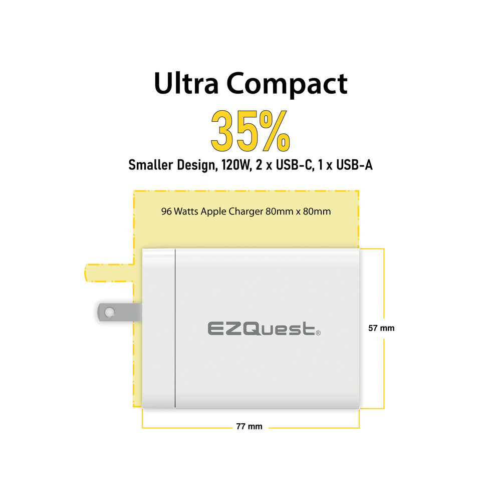 - Сетевое зарядное устройство EZQuest UltimatePower 120 Вт с тремя портами GaN USB Type-C и питанием