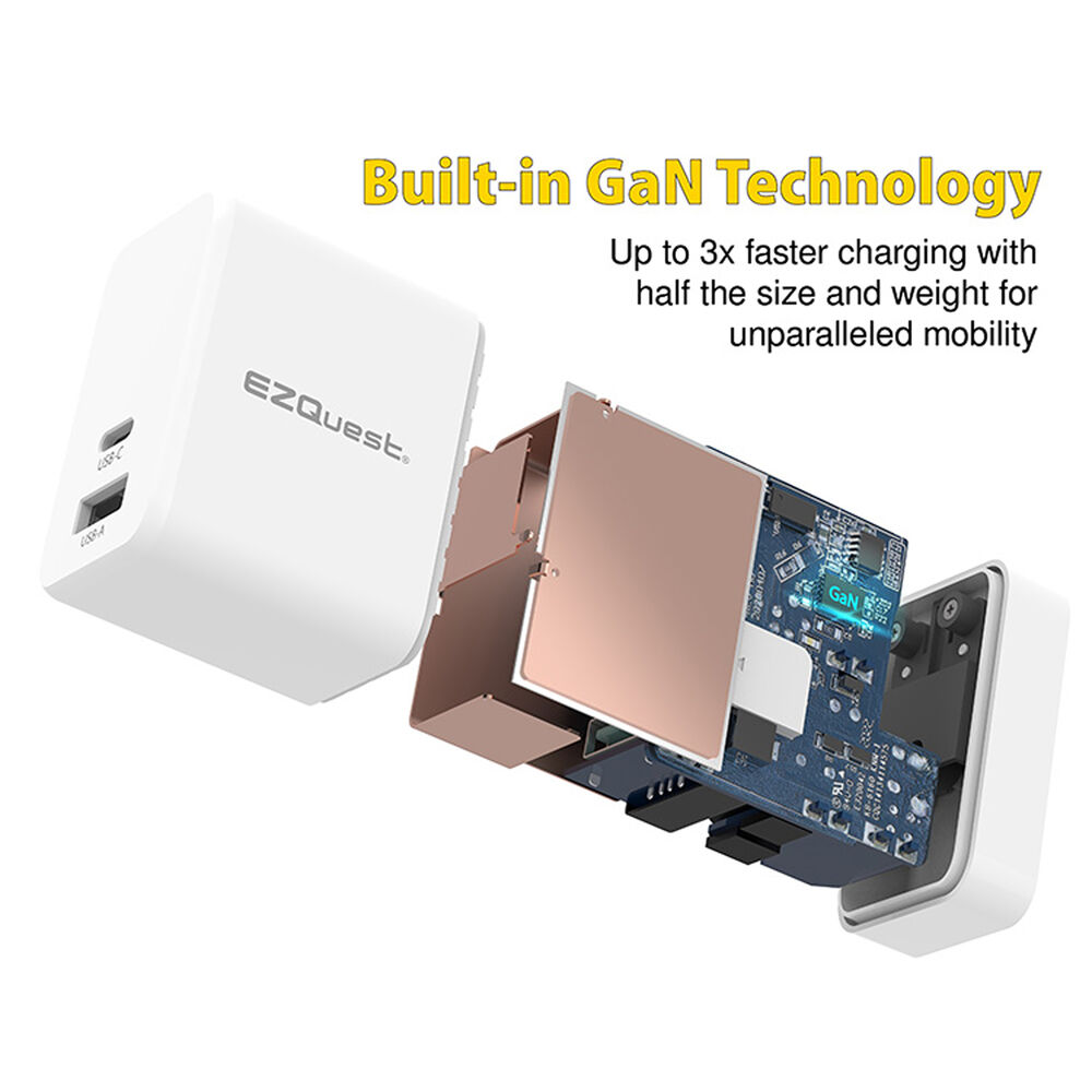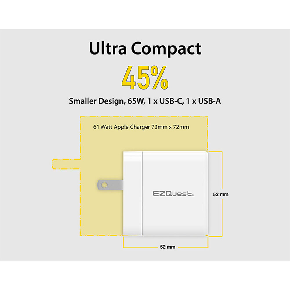 - Сетевое зарядное устройство EZQuest UltimatePower 65 Вт с двумя портами GaN USB Type-C и питанием