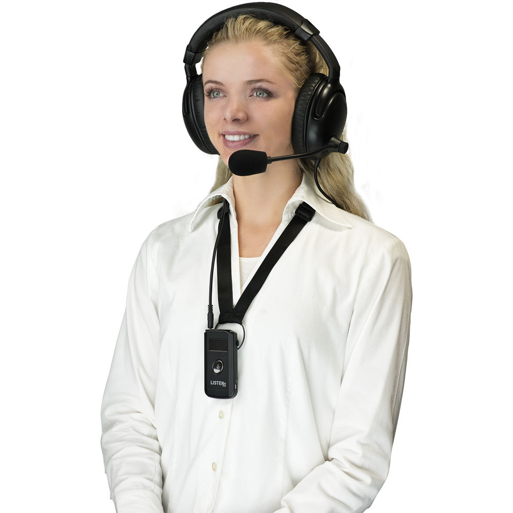 - Двойная полноразмерная гарнитура Listen Technologies LA-454 с микрофоном с шумоподавлением
