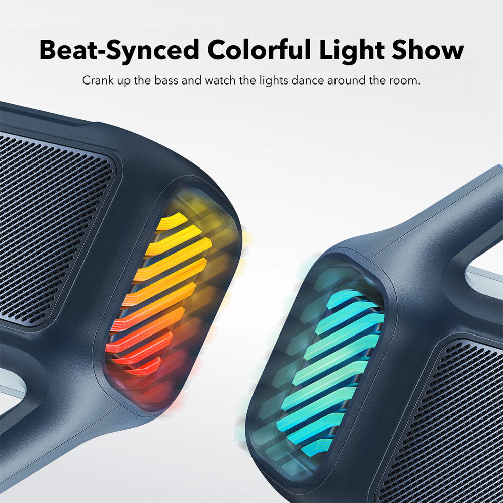 Soundcore by Anker готова начать вечеринку со стереозвуком, мощными басами и веселым светодиодным шоу. Сабвуфер Racetrack мощностью 50 Вт и два шелковых твитера мощностью 15 Вт выдают 60 Вт мощности по умолчанию, а при активации BassUp 2.0 мощность басов увеличивается на 20 Вт. Сбалансированный звук и басы дополнительно улучшены пассивными излучателями на каждом конце со встроенной светодиодной подсветкой. Настройте их цвет и эффект через приложение Soundcore, синхронизируя их с ритмом. Boom 2 легко носить с собой благодаря встроенной ручке, а благодаря аккумулятору, работающему до 24 часов при полной зарядке, музыка будет звучать весь день.