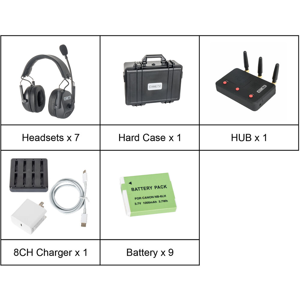 - Беспроводная полнодуплексная система внутренней связи CAME-TV Kuminik8 с 7 гарнитурами с двумя наушниками и концентратором (1,78–1,93 ГГц, США)