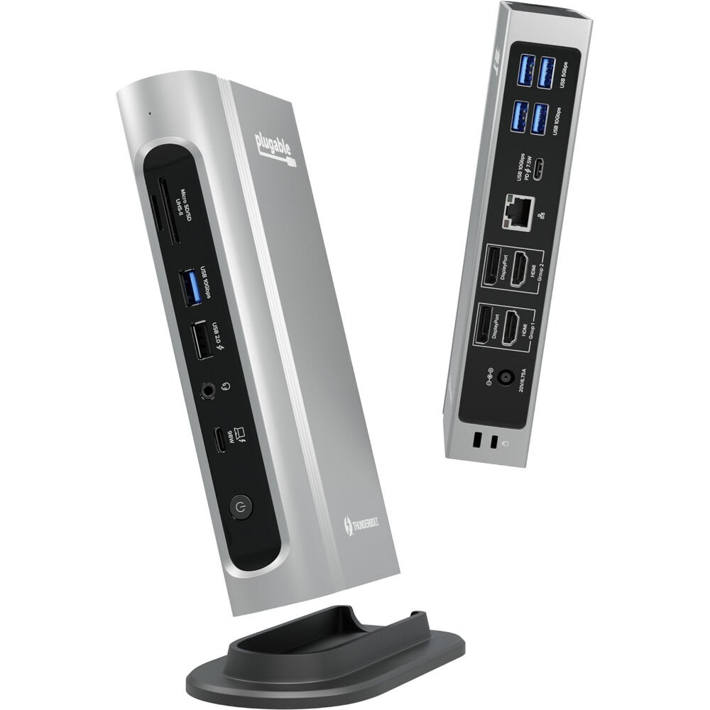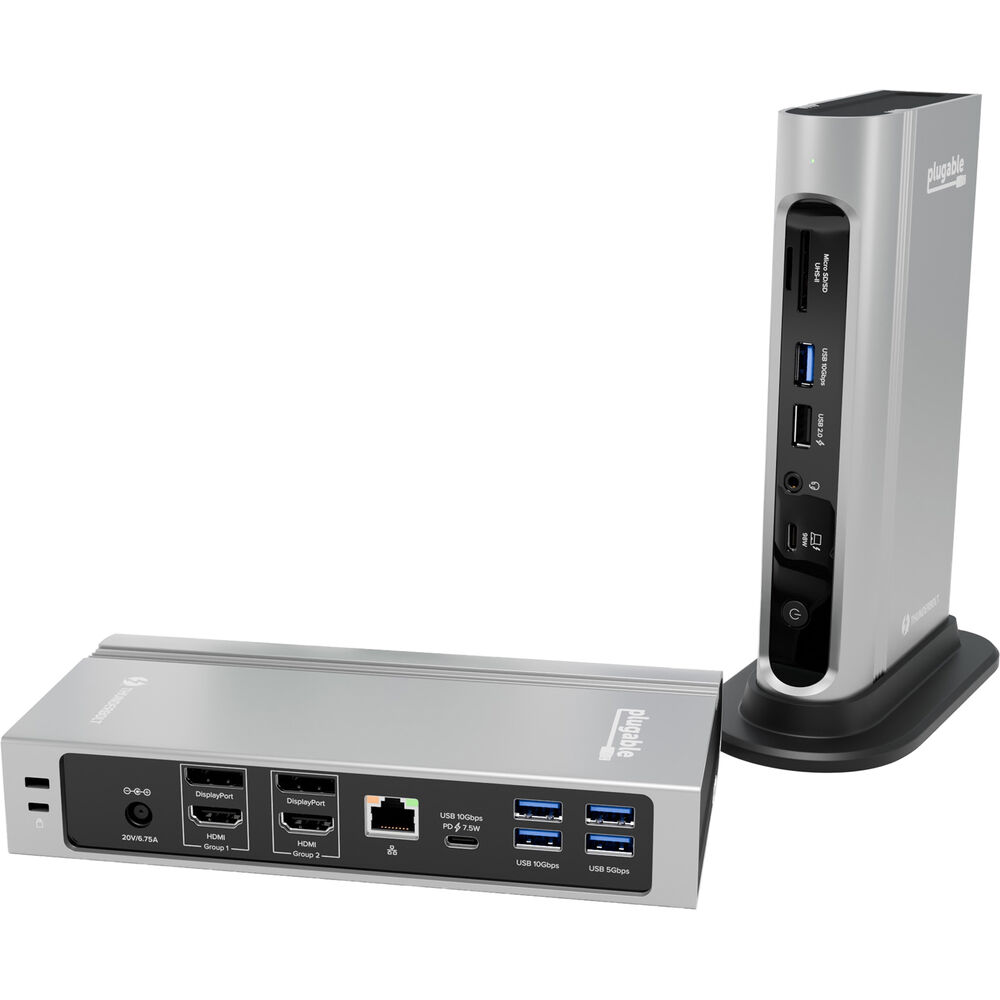 Plugable к свободному порту Thunderbolt 4 вашего ноутбука с помощью входящего в комплект кабеля. Благодаря поддержке до четырех дисплеев с разрешением 4096 x 2160 и частотой обновления 60 Гц, подключенных через два порта DisplayPort и два порта HDMI, вы можете значительно расширить свой цифровой рабочий стол для эффективной многозадачности и работы с крупными проектами. Эта док-станция также оснащена тремя портами USB-A и одним портом USB-C 3.2 Gen 2, которые обеспечивают передачу данных на совместимые устройства со скоростью до 10 Гбит/с. Кроме того, доступны два порта USB-A 3.2 Gen 1 со скоростью 5 Гбит/с и один порт USB 2.0. Поддержка мощности питания до 100 Вт (сертифицировано 98 Вт) позволит вам заряжать совместимый ноутбук во время работы.