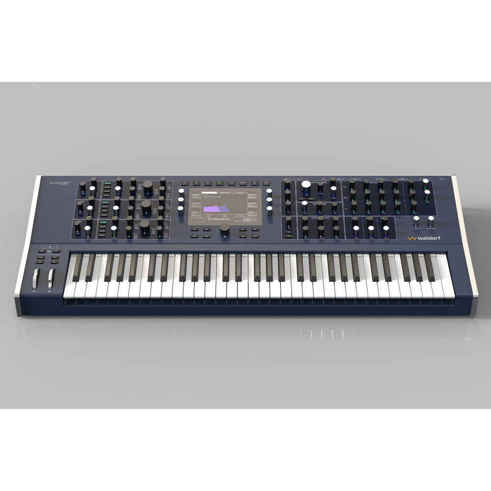 Waldorf Quantum MKII, флагманский полифонический аналого-цифровой гибридный синтезатор компании, который сочетает в себе мощь классических цифровых и аналоговых синтезаторов с Футуристические звуки, доступные только на современных высокопрограммируемых программных синтезаторах, в элегантном и доступном пользовательском интерфейсе с мультисенсорным дисплеем, оснащенным экранным анализатором спектра и осциллографом для глубокого визуального редактирования. MKII предлагает новые функции, включая новую клавиатуру FATAR TP/8SK с 61 полувзвешенной клавишей, полифоническое послекасание и новый алгоритм синтеза Kernel с широким спектром возможностей: от классической 6-операторной частотной модуляции до инновационной таблично-волновой модуляции. Объем памяти для хранения сэмплов также увеличен до 59 ГБ.