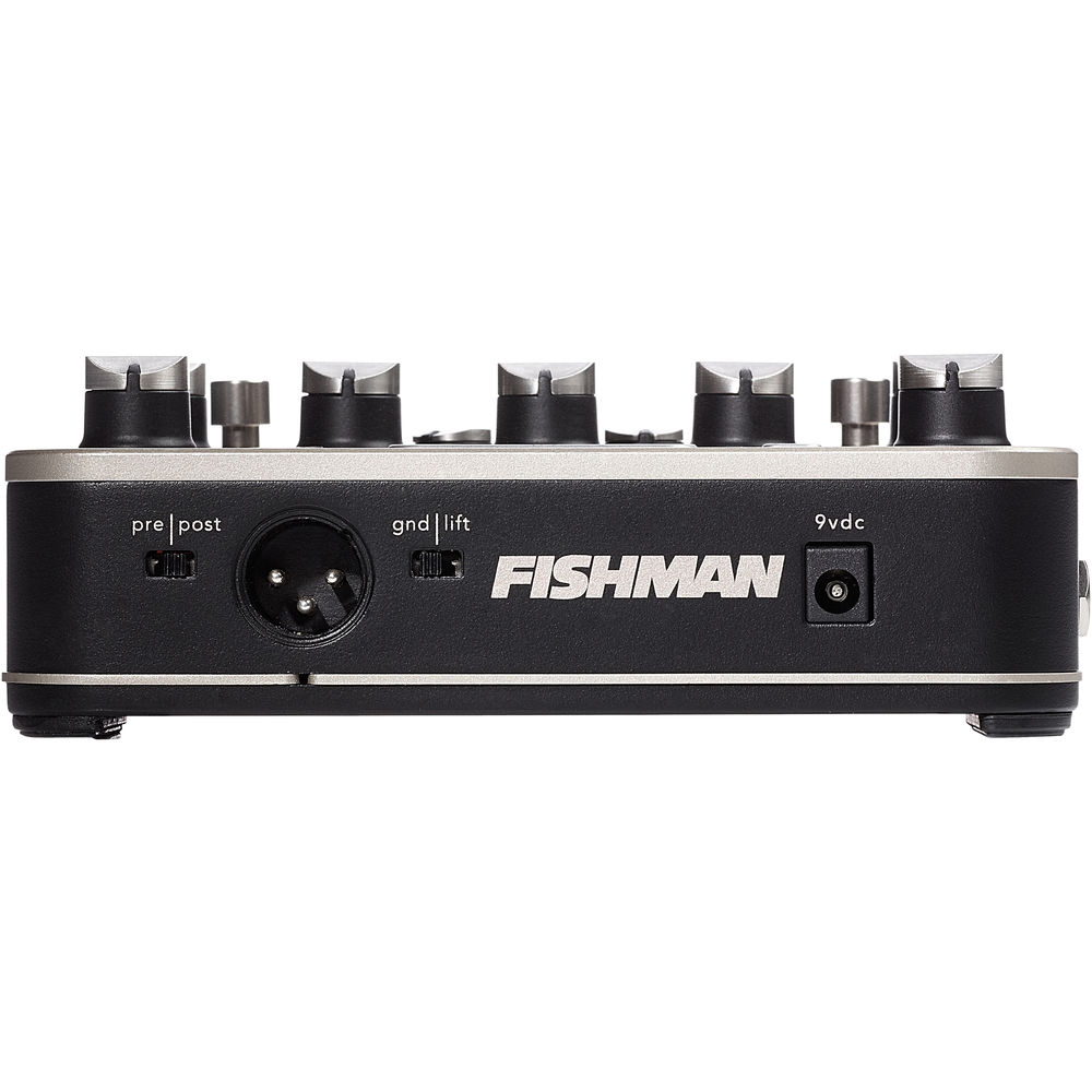 Fishman Platinum Pro EQ представляет собой предусилитель и DI с аналоговым сигнальным трактом, встроенной компрессией и множеством опций формирования тона. Подключения возможны через входные и выходные разъемы 1/4 дюйма, а также через разъем XLR DI для прямой подачи звука на домашнюю систему звукоусиления, микшер или записывающий интерфейс. Этот выход переключается на режим до/после эквалайзера, что означает, что вы можете направлять тонально сформированный или необработанный сигнал через эту секцию предусилителя. Также предусмотрены разъемы отправки и возврата 1/4 дюйма для подключения внешних устройств для дальнейшего улучшения и изменения общего звучания.