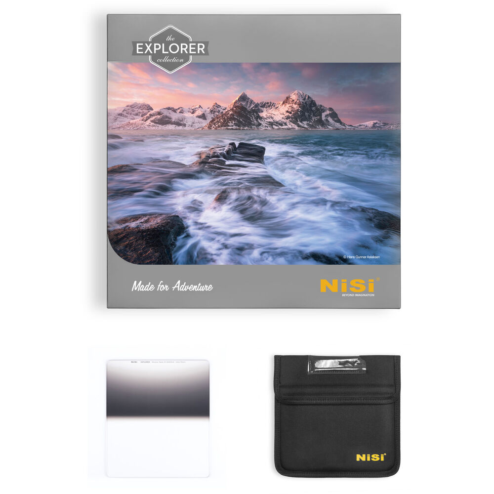 NiSi — это прямоугольный фильтр, который помогает затемнить определенные области изображения, например, яркое небо во время восхода или заката, обеспечивая при этом нормальную, неизменную экспозицию в других областях изображения. Размещение полосы плотности 0,6, которая сужается над ней с чистой областью непосредственно под ней, позволяет фильтру соответствовать положению солнца, когда оно находится на горизонте или сразу над ним. В таких случаях солнце может казаться ближе к центру изображения, а не к верхнему краю, и создается увеличение яркости, которое более заметно по обе стороны от солнца, чем над ним. Фильтр имеет наибольшую плотность по краю и сужается к прозрачности к середине, с мягкой линией перехода между плотными и чистыми областями. Фильтры нейтральной плотности не влияют на цвет изображения, и этот фильтр обеспечивает уменьшение света, попадающего в объектив, до 2 ступеней. Это полезная функция при съемке пейзажей, чтобы насытить небо, не теряя деталей переднего плана в темноте.