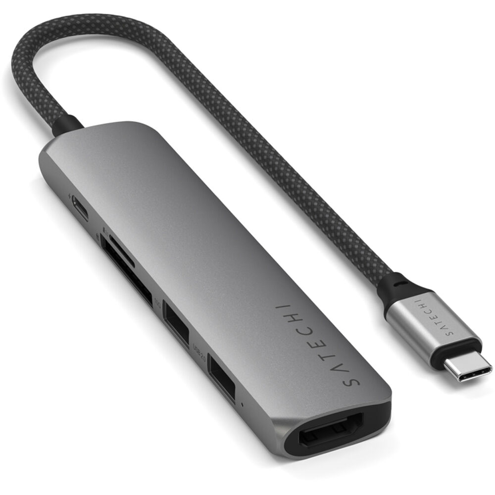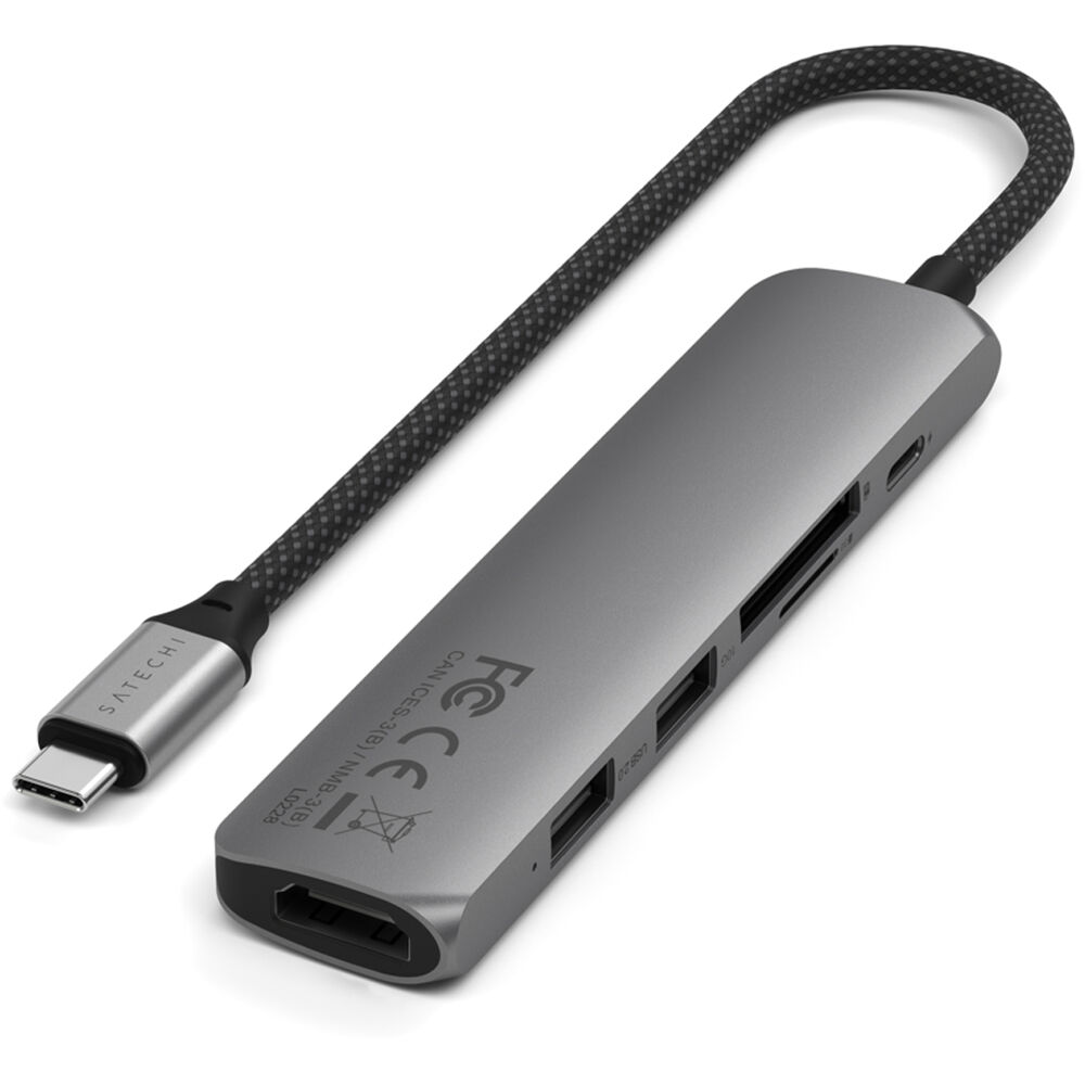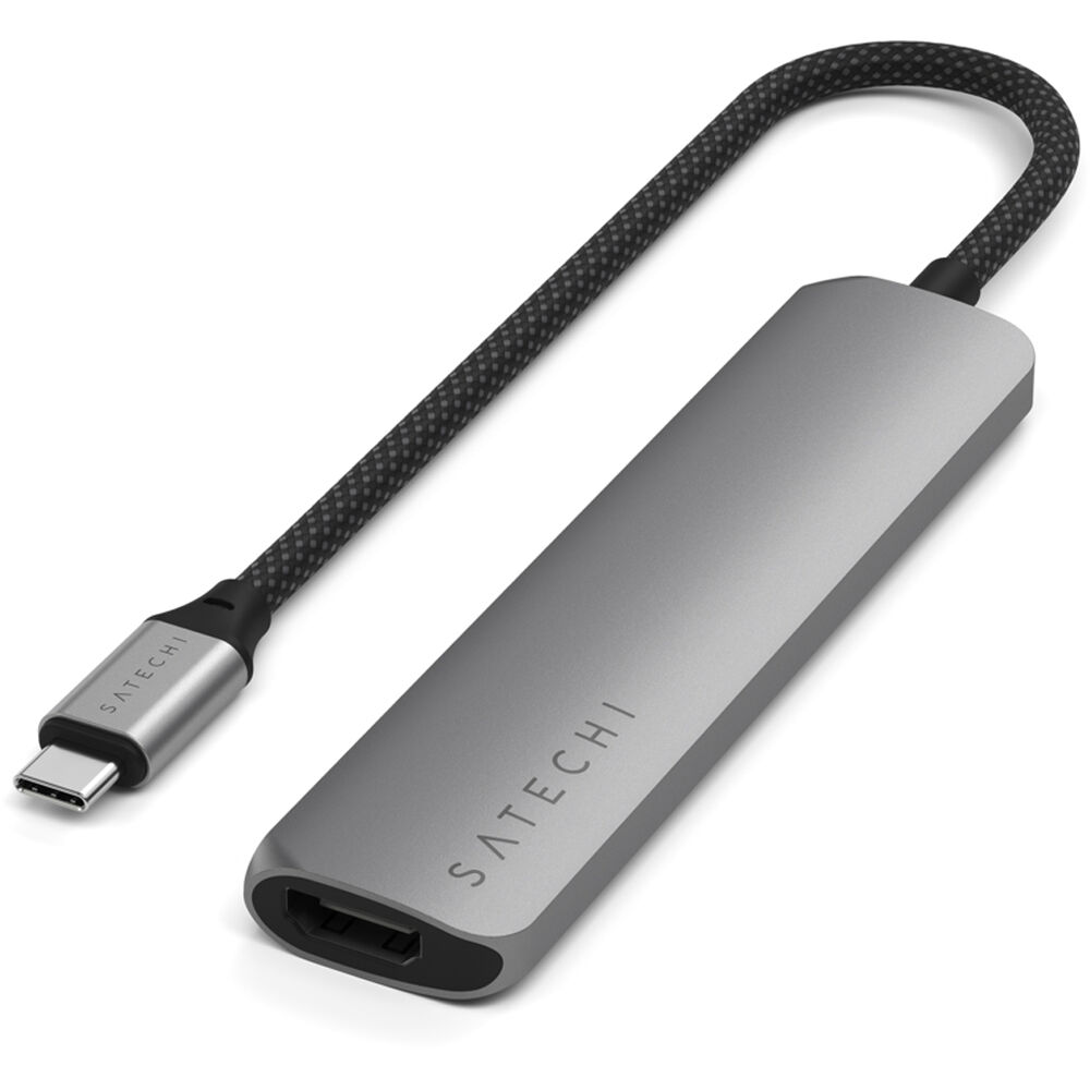 - Многопортовый адаптер Satechi Slim USB-C 6-в-1 (серый)