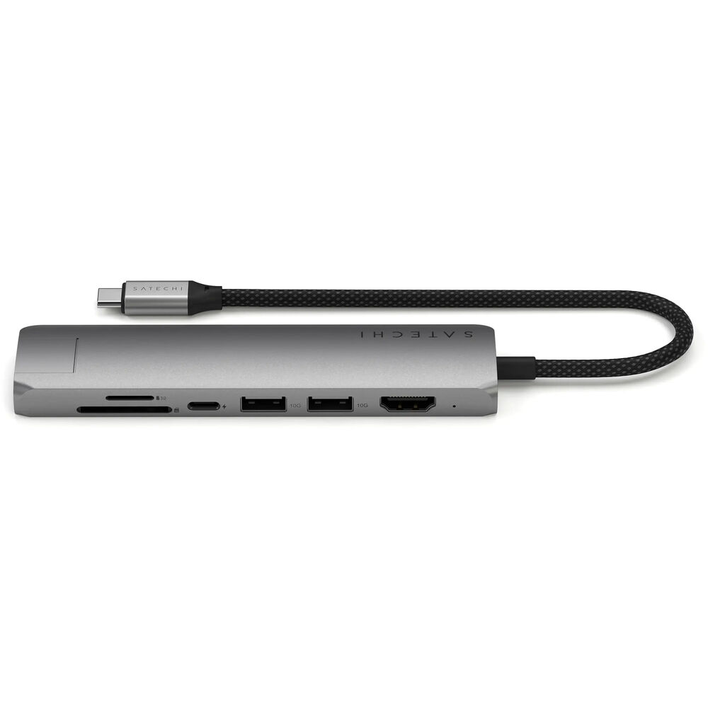 Satechi. Благодаря элегантному серому алюминиевому корпусу и оплетенному кабелю USB-C 3.2 Gen 2 для подключения к компьютеру, этот концентратор легко и удобно брать с собой куда угодно благодаря прочности и компактному форм-фактору. Благодаря одному порту USB-C PD с входной мощностью до 100 Вт и выходной мощностью 80 Вт для зарядки устройств, двум портам USB-A 3.2 Gen 2 со скоростью до 10 Гбит/с, одному кардридеру Micro/SD со скоростью чтения до 104 МБ/с и одному порту Gigabit Ethernet со скоростью 10/100/1000 Мбит/с, он обеспечивает бесперебойную передачу файлов, более высокую скорость сети и надежное соединение. Кроме того, встроенный порт HDMI позволяет выводить видео 4K на внешний монитор с частотой обновления 60 Гц. Компания Satechi разработала этот концентратор как полностью готовый к использованию, поэтому для его полной функциональности не требуется дополнительное программное обеспечение, а благодаря широкой совместимости с устройствами вы сможете использовать этот концентратор на множестве устройств.
