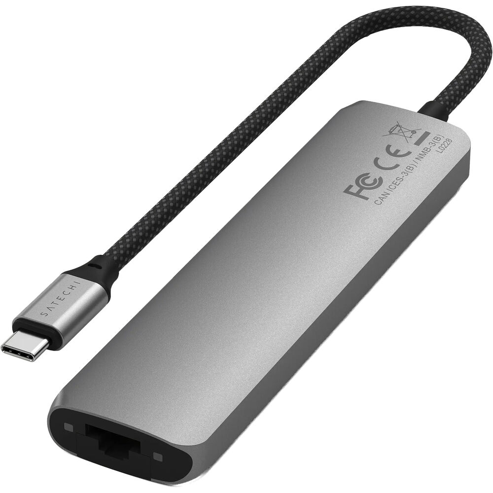 - Многопортовый адаптер Satechi Slim USB-C 7-в-1 с Ethernet (серый)