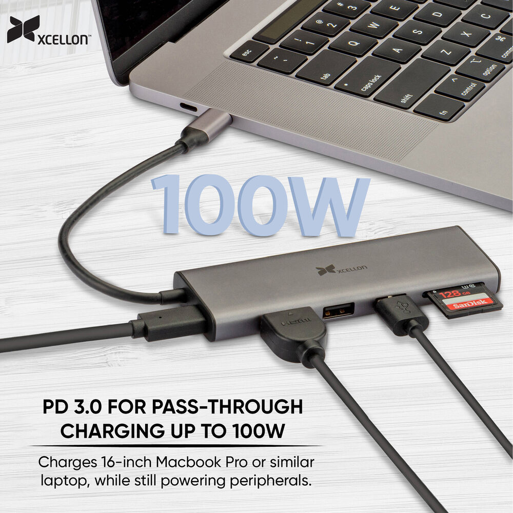 - Концентратор Xcellon 6-в-1 USB-C с функцией подачи питания