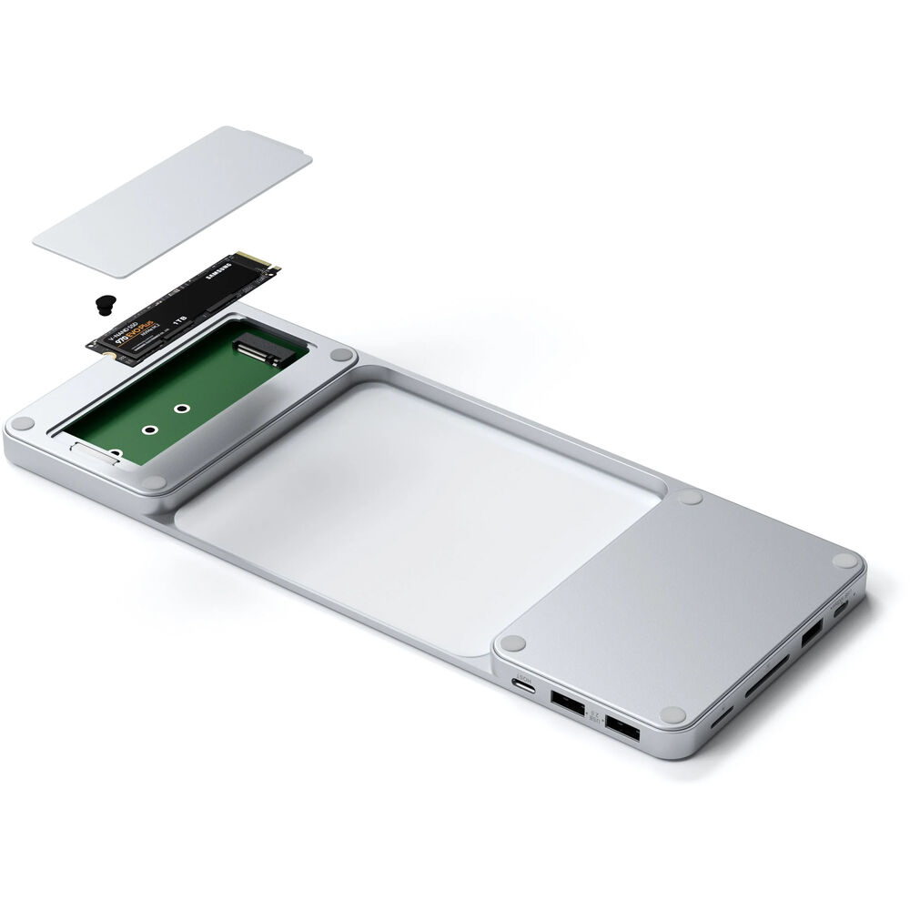Satechi. Благодаря одному порту USB-C 10 Гбит/с, одному порту USB-A 10 Гбит/с, двум портам USB-A 2.0 и слотам для карт памяти micro/SD, гарантированно повышается производительность, поскольку вы можете легко и быстро считывать и переносить данные, а также подключать мыши, клавиатуры, веб-камеры и другие периферийные устройства. Кроме того, вы можете снабдить свою систему внешним хранилищем через слот M.2 SSD, который позволяет устанавливать диски NVME и SATA с максимальной скоростью до 10 Гбит/с и максимальной емкостью 2 ТБ. Этот концентратор разработан для совместимости с 24-дюймовыми iMac 2021 и 2023 годов и подключается с помощью входящего в комплект кабеля USB-C. Satechi разработала этот концентратор по принципу plug-and-play, что означает, что для использования всех функций не требуется дополнительное программное обеспечение. Элегантный и тонкий дизайн также означает, что этот концентратор будет выглядеть уместно рядом с другими вашими устройствами Apple.