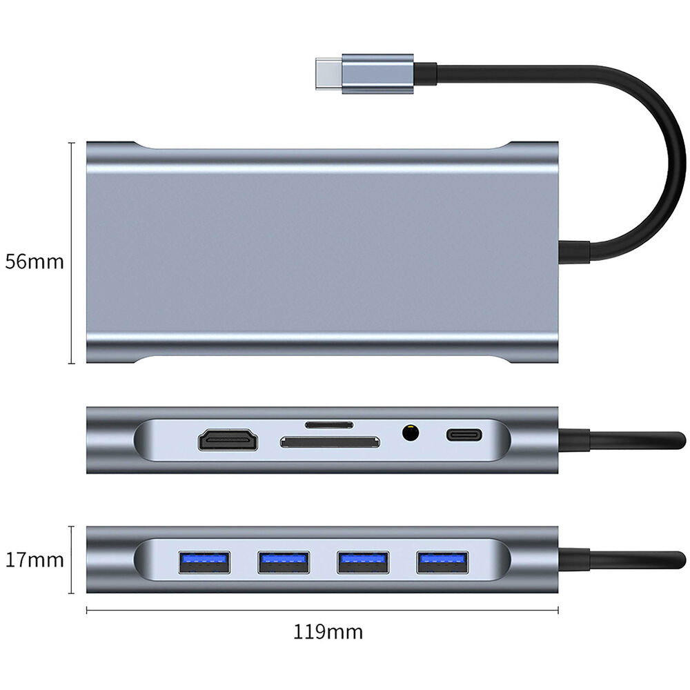 - Многопортовый адаптер CAMVATE 11-в-1 USB-C (серебристый)