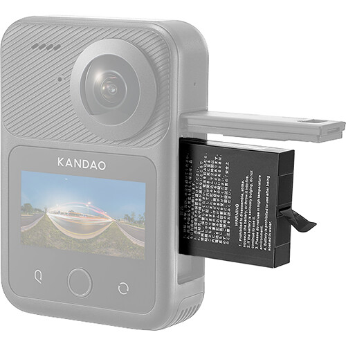 Аккумулятор Kandao обеспечивает питание камеры QooCam 3 Ultra 360° для более длительной съемки. При комнатной температуре аккумулятор емкостью 2280 мА·ч позволяет снимать видео 8K/30 в течение 50 минут, видео 5,7K/30 в течение 60 минут и видео 180° с одним объективом в формате 4K/30 в течение 100 минут.