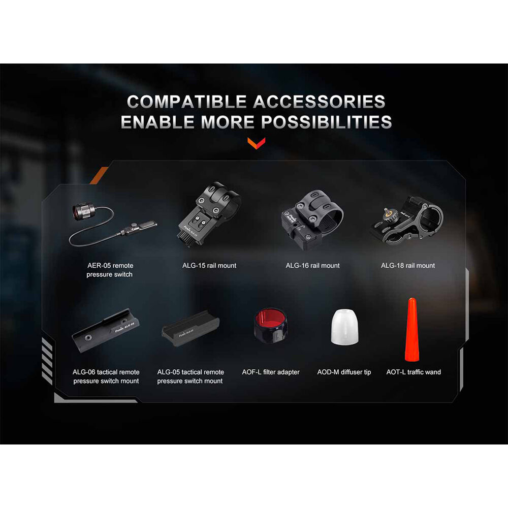 Fenix идеально подходит для сотрудников правоохранительных органов/служб безопасности, поисково-спасательных групп и всех, кому нужен фонарь с дальним световым потоком. Его лазер класса 1 мощностью 10 Вт обеспечивает световой поток до 500 люмен. Тактический переключатель на торце фонаря управляет кратковременным или постоянным включением/выключением, а также стробоскопом. Переключатель на рукоятке используется для выбора высокой/низкой яркости и режима блокировки, предотвращающего случайное включение. TK30R имеет легкий, но прочный алюминиевый корпус, водонепроницаемый, пылезащищенный и ударопрочный. Он работает до 8,8 часов в режиме низкого заряда батареи от входящего в комплект аккумулятора USB-C 21700.