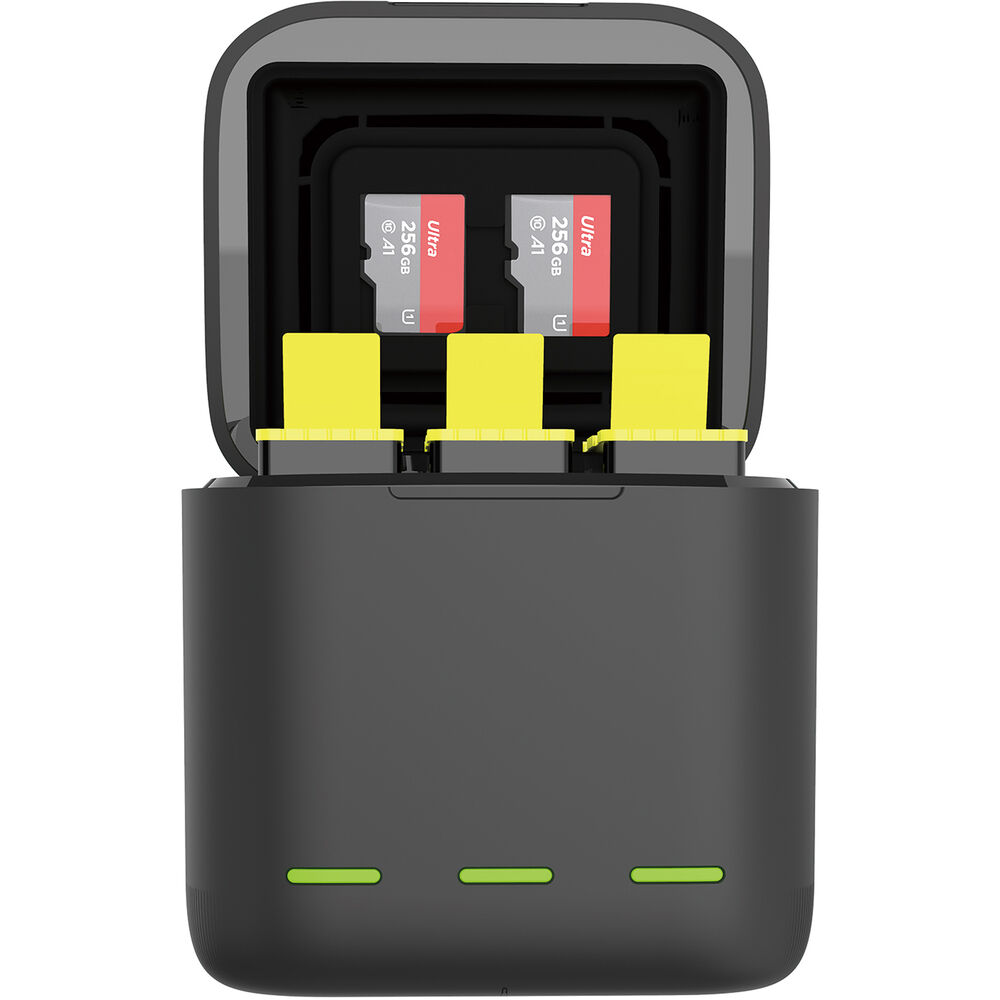 TELESIN — это универсальное устройство для хранения и зарядки аккумуляторов GoPro, которое также вмещает до двух дополнительных карт TF в защитных силиконовых слотах для карт. Зарядное устройство одновременно заряжает два включенных аккумулятора емкостью 1750 мАч за 2,5 часа. Устройство оснащено портом USB-C для быстрой зарядки с высоким током 2,4 А, а также может питаться от ноутбука, внешнего аккумулятора или автомобильного зарядного устройства. Одного аккумулятора хватит на 112 минут съемки GoPro в зависимости от выбранной частоты кадров и режима работы. Декодирование происходит без всплывающих окон.