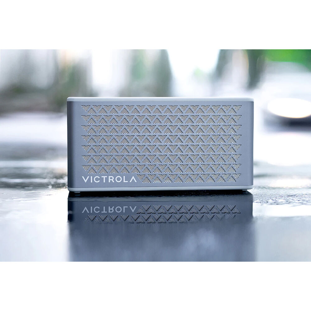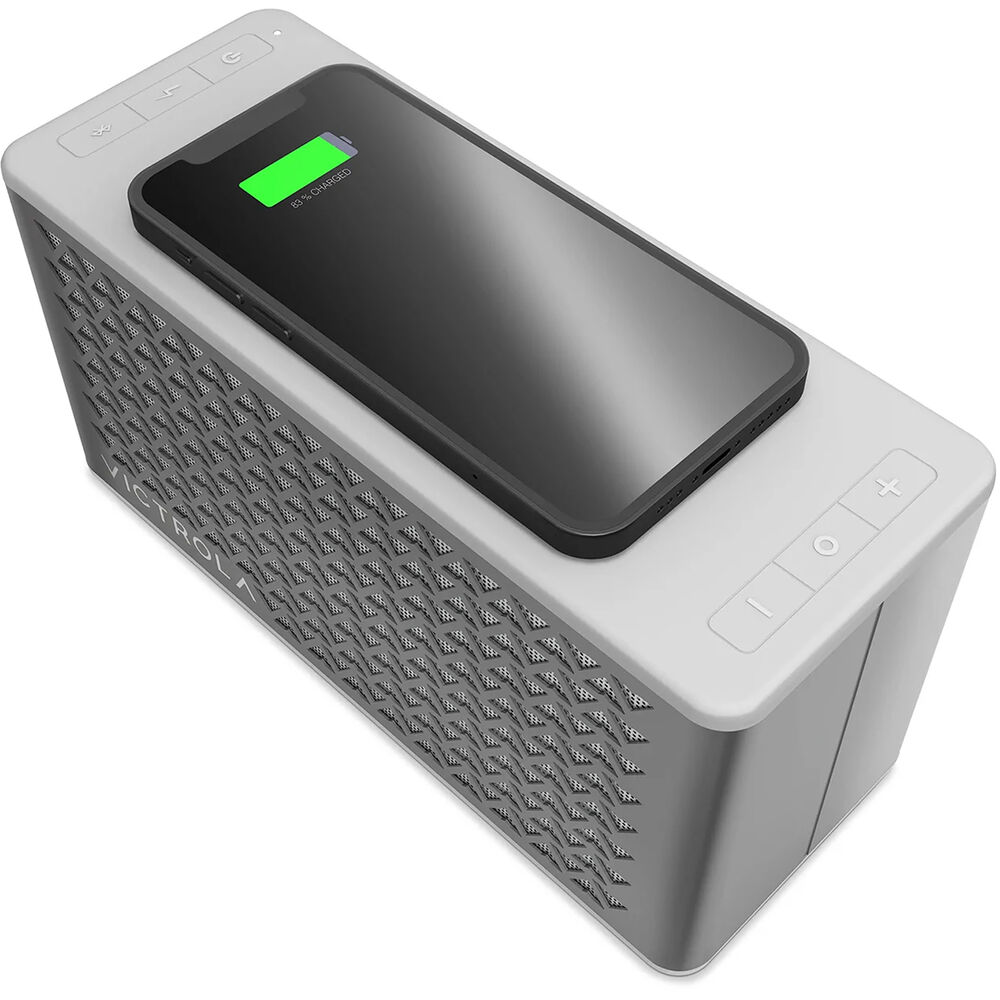 Victrola серебристого цвета может стать музыкальным прибором как в вашем доме, так и на улице. Она будет одинаково уместна как на прикроватном столике в гостиной, так и на веранде. Два динамика и пассивные басовые излучатели обеспечивают динамичное звучание с мощными басами, а музыка может воспроизводиться до 20 часов при полной зарядке. Для вашего удобства верхняя часть Music Edition 2 оснащена встроенной зарядной панелью, что позволяет заряжать смартфон по беспроводной сети, одновременно транслируя аудио через динамик.