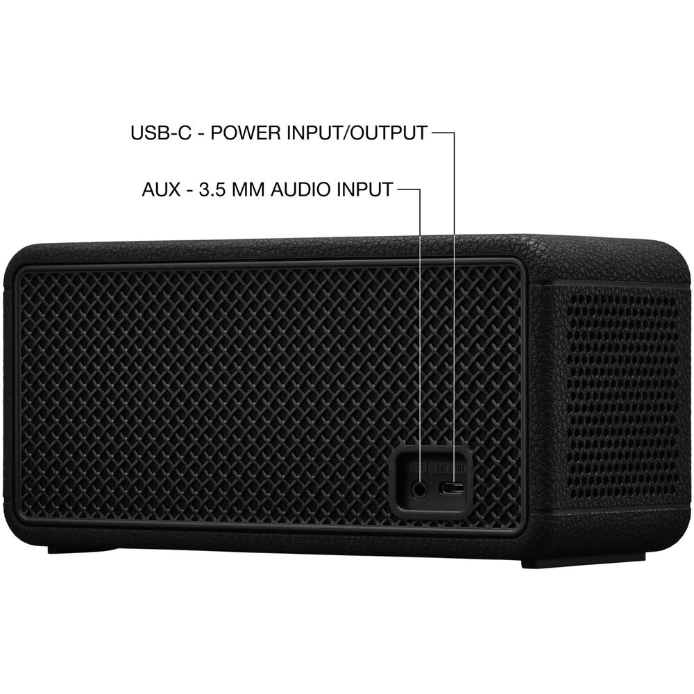Marshall создана для использования на открытом воздухе благодаря пыле- и водонепроницаемой конструкции. Фактически, она может выдержать погружение в воду на глубину до 3,3 фута в течение 30 минут. Middleton II также создан для многонаправленного звука, который будет слышен всем. Технология True Stereophonic обеспечивает 80 Вт звука на 360°. Вы можете слушать музыку весь день и даже целый день благодаря более чем 30 часам автономной работы, которые также можно использовать для питания мобильного устройства, чтобы потоковое вещание не прерывалось. Управлять всем этим легко с помощью приложения Marshall или кнопок на верхней панели.