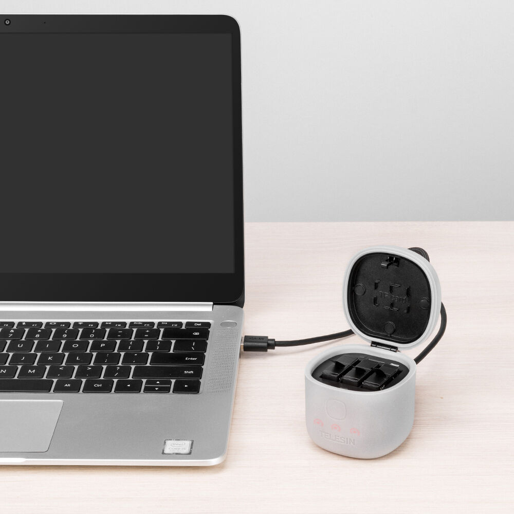Храните и одновременно заряжайте три аккумулятора для вашей экшн-камеры GoPro HERO8/7/6/5 с помощью этого зарядного устройства Allin на 3 канала с картридером TF от TELESIN. Портативное зарядное устройство имеет три слота для трех литий-ионных аккумуляторов емкостью 1220 мАч для GoPro HERO8/7/6/5, которые можно приобрести отдельно.