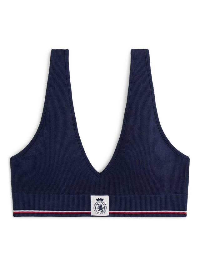 Ребристый бюстгальтер-бралетт из эластичной хлопковой смеси с глубоким вырезом на спине в спортивном стиле. Без косточек, со съемной подкладкой и фирменной эмблемой TH на нижней резинке.
