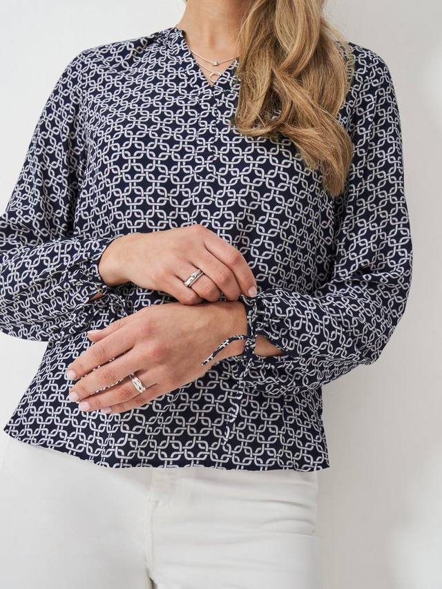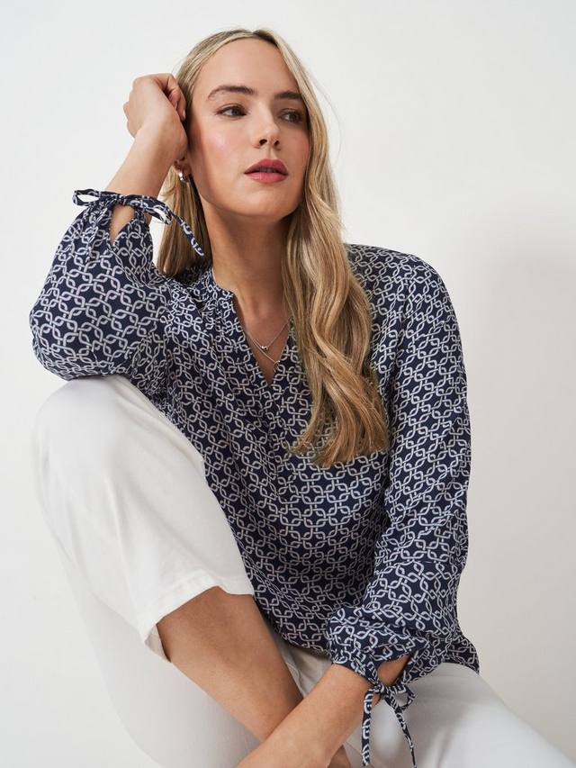 Встречайте блузку Tilly от Crew Clothing. Эта классическая модель с V-образным вырезом, отделкой в виде планки и длинными рукавами, украшенными красивыми завязками на манжетах, легко сочетается с джинсами или заправляется в юбку миди для создания более элегантного образа.