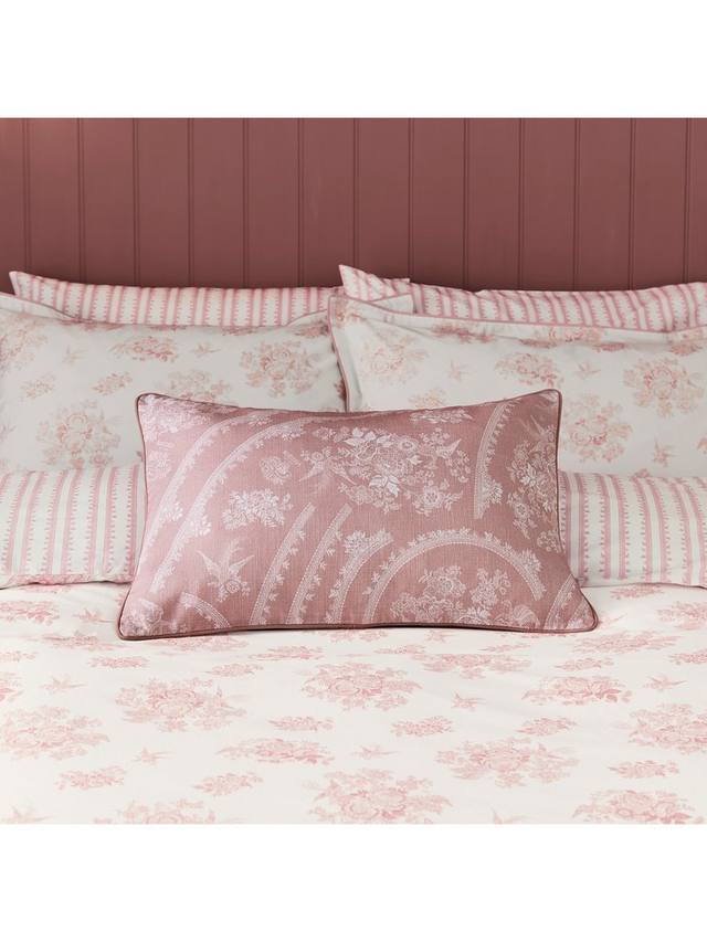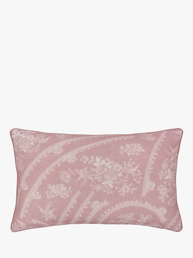 Фактурная хлопковая подушка с вышитым цветочным узором и изображением птиц.