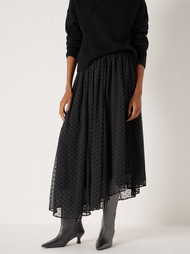 Эта юбка от HUSH с асимметричным подолом выглядит современно, украшена едва заметными пятнами и застегивается на молнию.