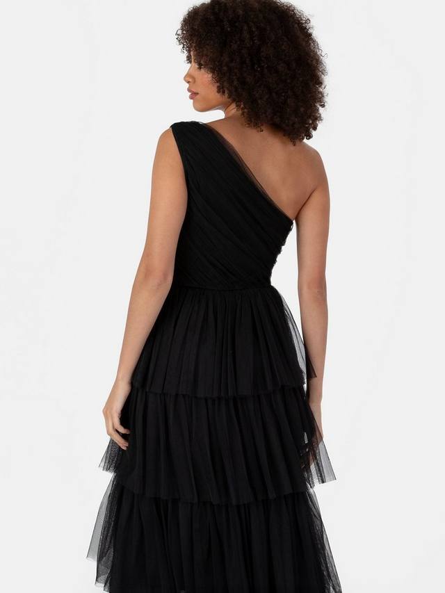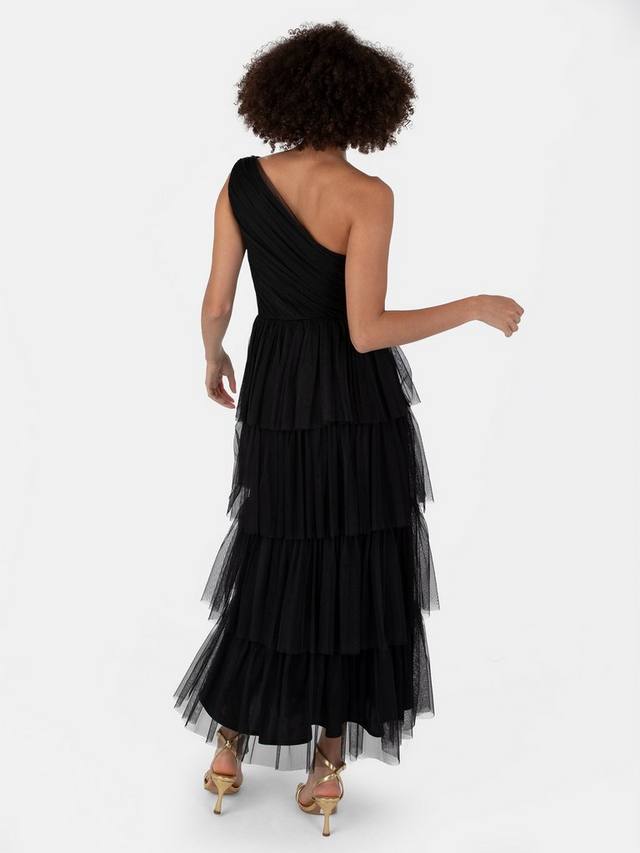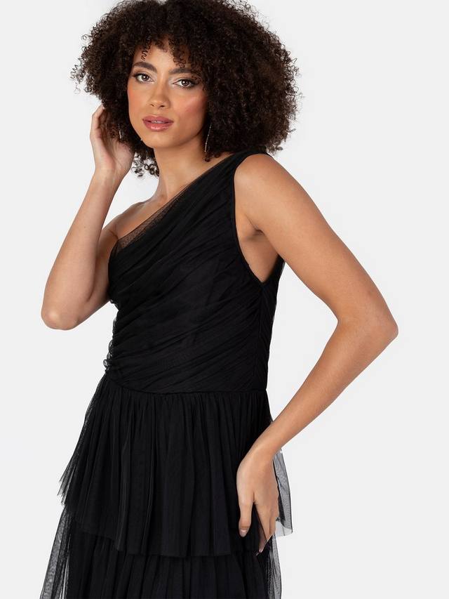 Фирменный образ Анайи сохраняет свою тщательно собранную форму по всей длине этого макси-платья, создавая мечтательную ауру благодаря эффектной горизонтальной сборке на талии, которая подчёркивает естественный А-образный силуэт платья. Расклешенные детали на плечах и глубокий V-образный вырез подчёркивают женственное очарование этого платья. А для этого штриха очарования вы найдете высокий разрез до бедра на юбке макси, который требует мощного выхода на танцпол.