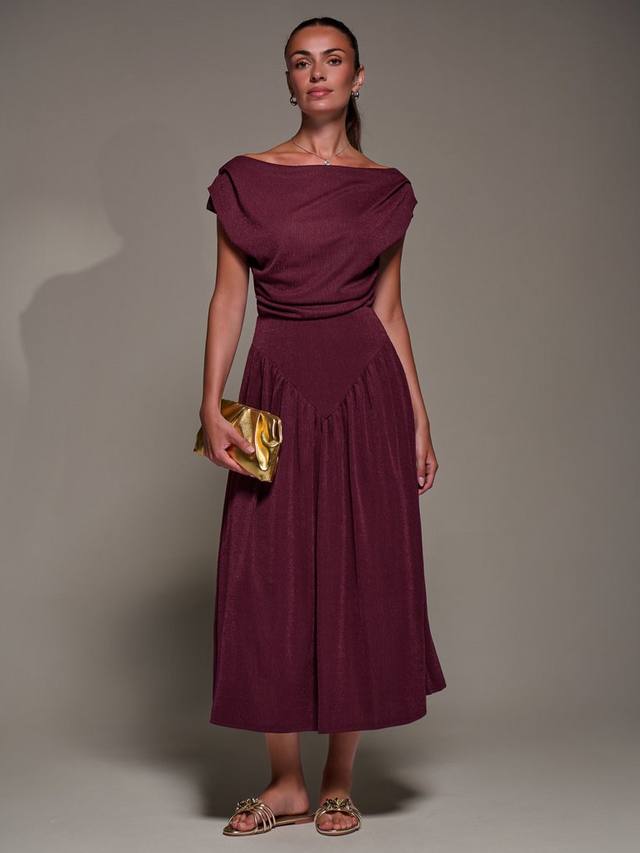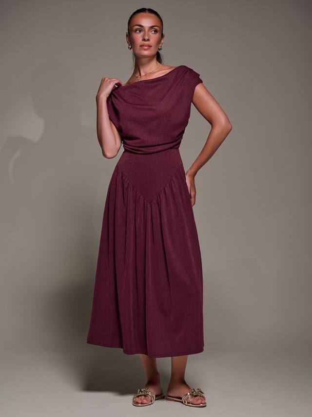 Платье Midaxi с асимметричным вырезом от Jolie Moi отличается изящным воротником-хомутиком и мягкими сборками на плечах и по бокам, создавая изящную драпировку, которая выгодно подчеркивает фигуру. Элегантная юбка с дополнительным объемом выгодно подчеркивает силуэт.