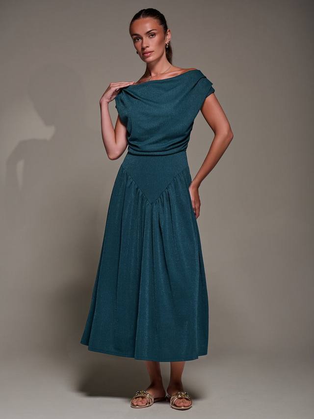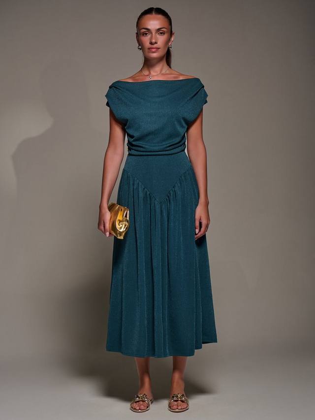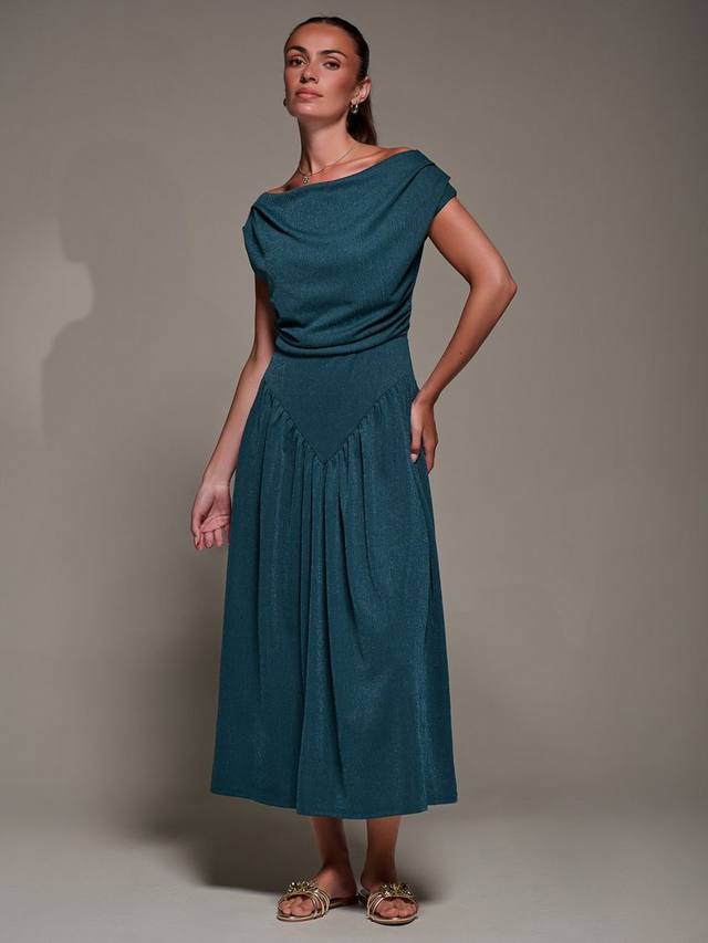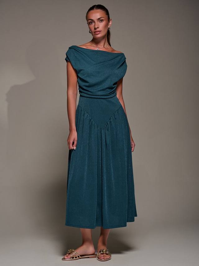 Платье Midaxi с асимметричным вырезом от Jolie Moi отличается изящным воротником-хомутиком и мягкими сборками на плечах и по бокам, создавая изящную драпировку, которая выгодно подчеркивает фигуру. Элегантная юбка с дополнительным объемом выгодно подчеркивает силуэт.
