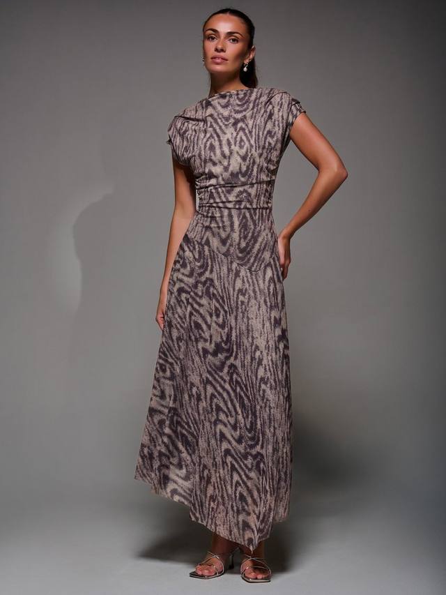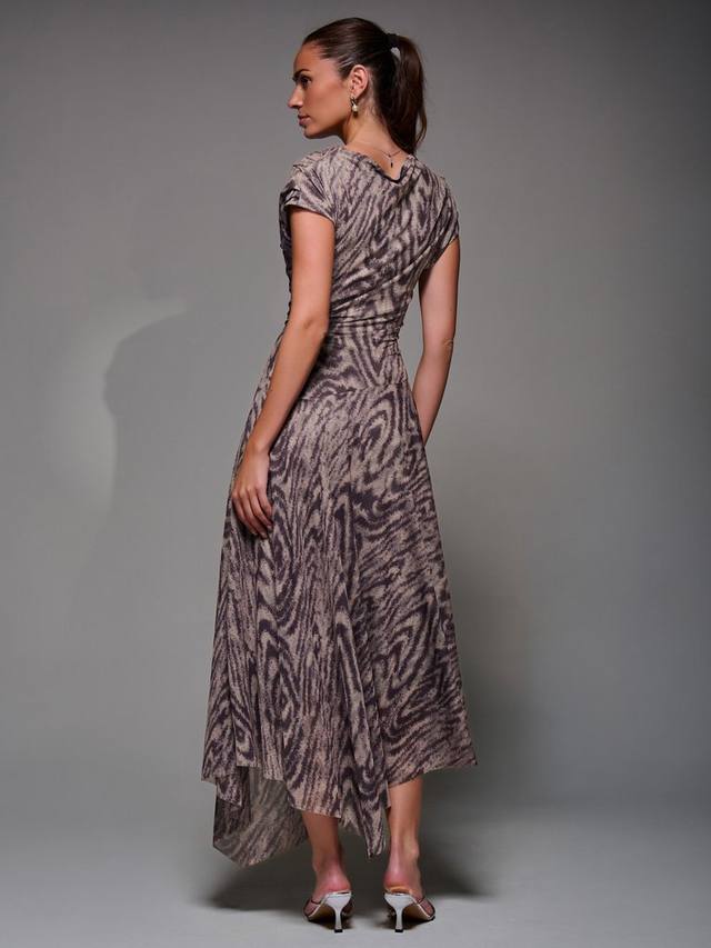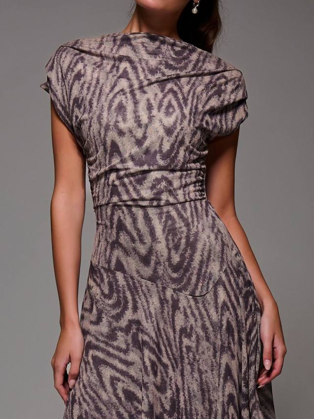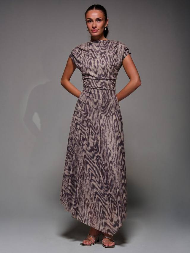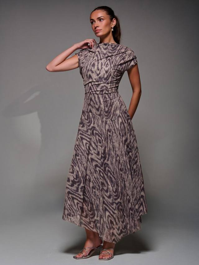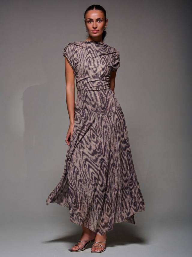 Асимметричное драпированное платье Midaxi с косым вырезом, плиссированными плечами и мягкими сборками на талии для мягкой драпировки. Заниженная линия талии и асимметричный подол сочетают в себе современную и вневременную элегантность для любого случая.