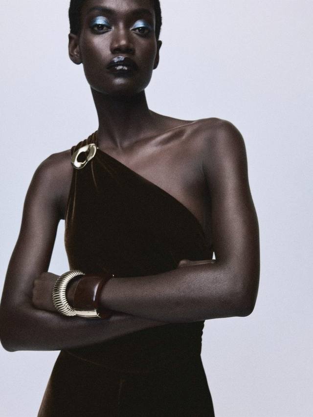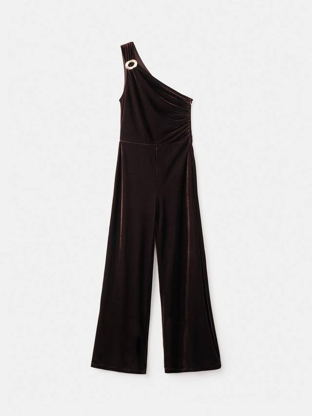 Асимметричный, декорированный комбинезон с облегающим силуэтом, переходящим в широкие брюки, которые позволяют вам двигаться уверенно.