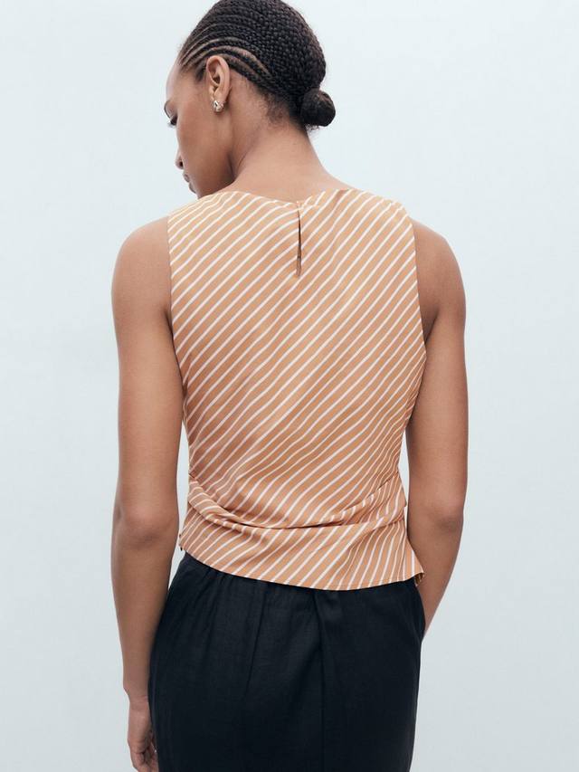 Полосатый жилет с круглым вырезом от Mango. Без рукавов он сохраняет прохладу, а ткань с высоким содержанием хлопка обеспечивает комфорт в любых ситуациях.