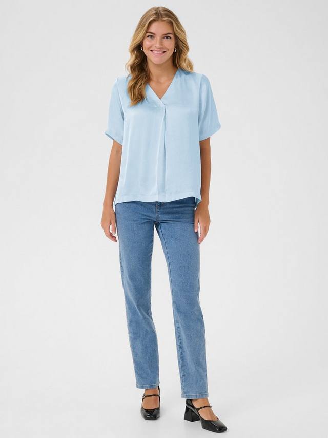 Эта блузка от KAFFE — лёгкий выбор, она освежит ваш гардероб. Изделие выполнено из мягкого атласа с V-образным вырезом и короткими рукавами.