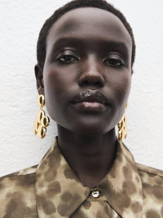 Простая рубашка от Mango. Воротник и длинные рукава украшены пятнами. Идеально подходит для веселых случаев.