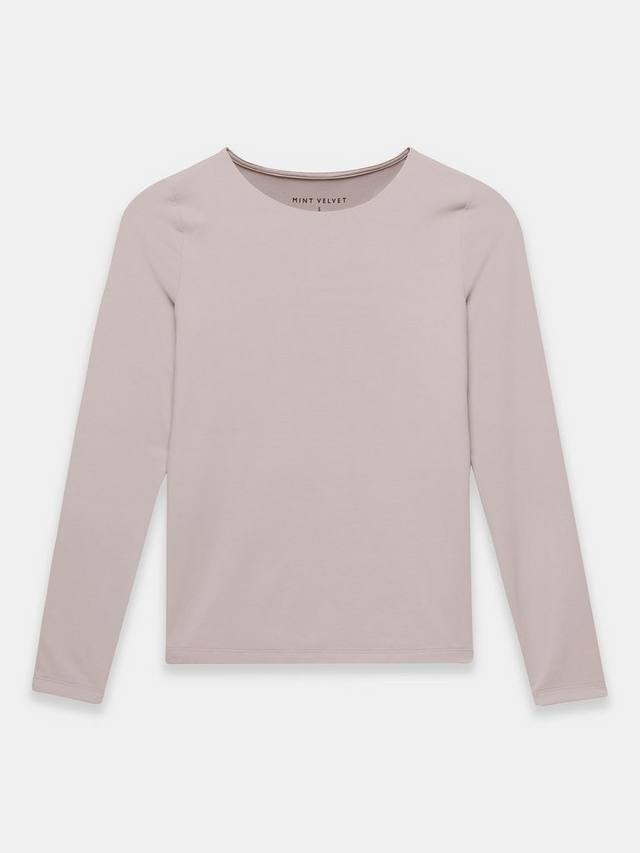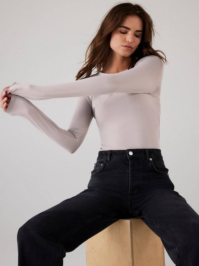 Универсальный топ с круглым вырезом и длинными рукавами.