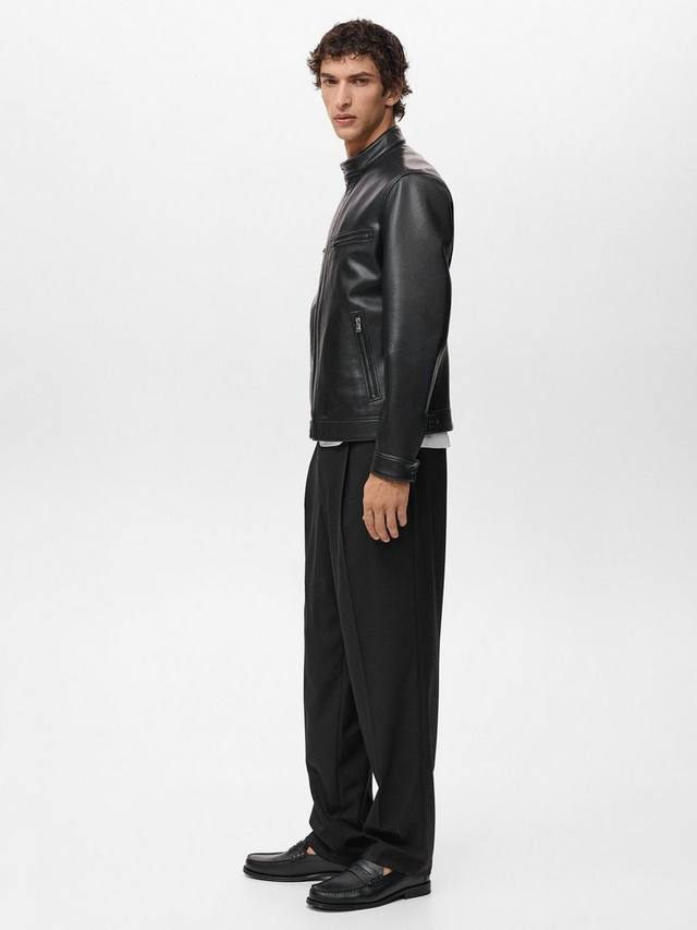 Классическая байкерская куртка с застежкой-молнией спереди и различными карманами, которые придают модели еще более прочный вид.