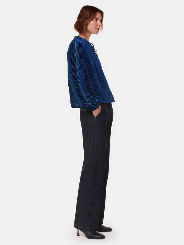 Эта блузка от Whistles с принтом в полоску деворе станет прекрасным дополнением к вашему гардеробу. Она выполнена из лёгкой, но прочной смесовой ткани с завязкой на горловине и длинными рукавами.