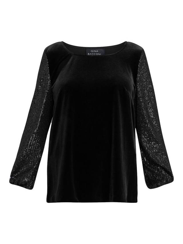 Удобный накидной элемент для обновления гардероба в этом сезоне! Рукава с пайетками гармонично сочетаются с мягким бархатным корпусом. Идеальный топ на все случаи жизни.