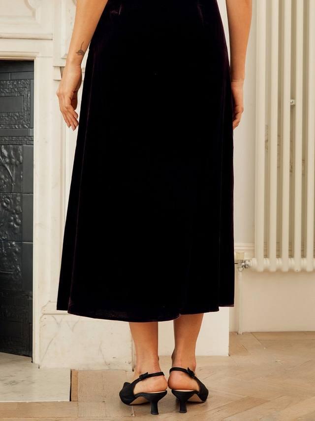 Эту бархатную юбку миди, мягкую, роскошную и подчеркивающую фигуру, легко надеть или просто надеть, чтобы создать элегантный и непринужденный образ.