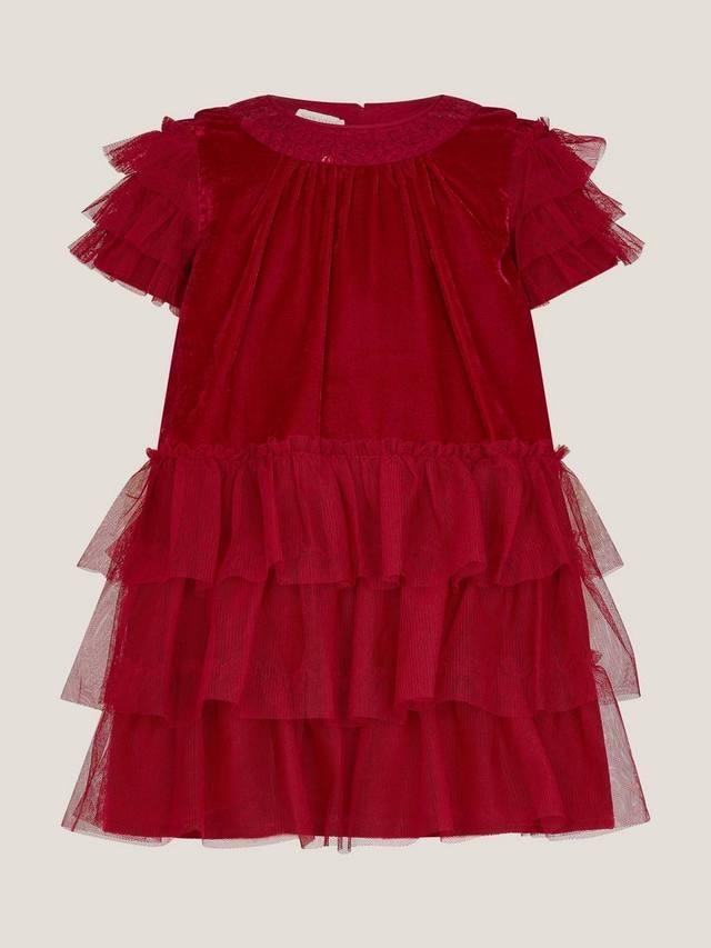 Это платье из мягкого бархата и тюля с оборками идеально подходит для первых детских праздников. Оно украшено мерцающими пайетками вокруг выреза, которые придают ему немного блеска.
