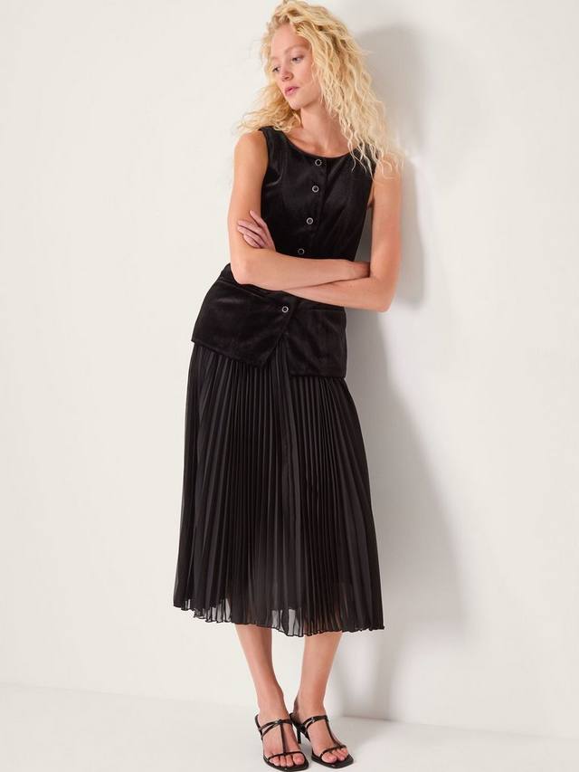 Плиссированная интерпретация классического облегающего силуэта с расклешенной юбкой. Это платье миди без рукавов от Monsoon с круглым вырезом, а благодаря простому крою оно подходит ко всему.