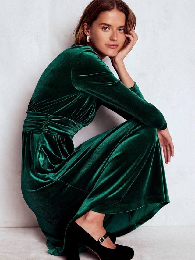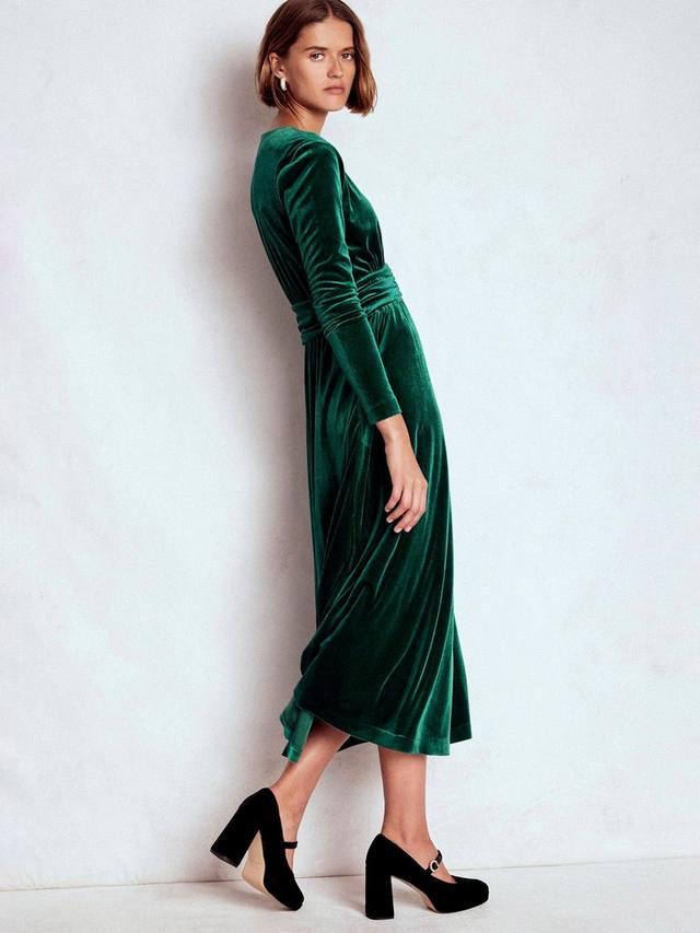 Планы на выходные уже в пути. Это платье миди с длинными рукавами от Boden имеет простой круглый вырез и простой крой, который идеально сочетается с вашими любимыми аксессуарами.