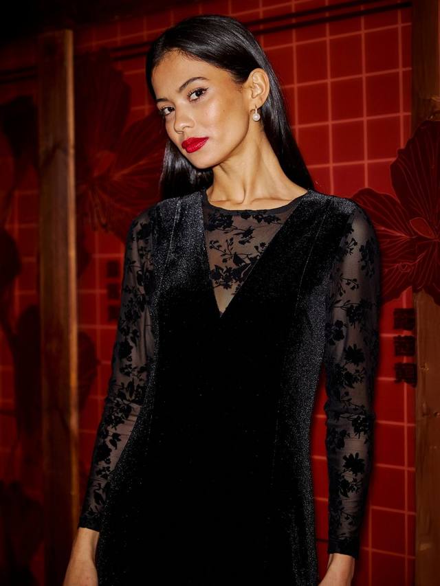 Фаворит, идеально облегающий фигуру. Это мини-платье от Yumi с длинными рукавами, круглым вырезом и кружевной отделкой.