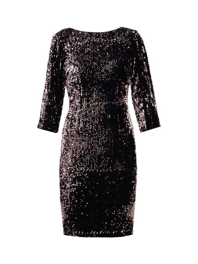 Сияйте в этом удобном платье-трапеции! Платье простого кроя из мягкого бархата с пайетками удобно и неподвластно времени. Пайетки с лёгким розовым оттенком создают лёгкий цветовой акцент.