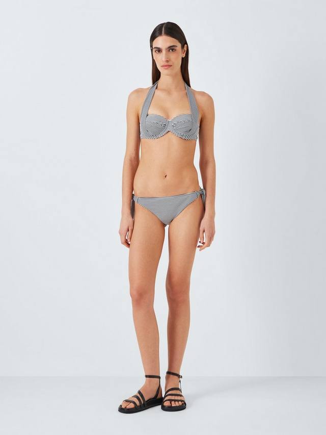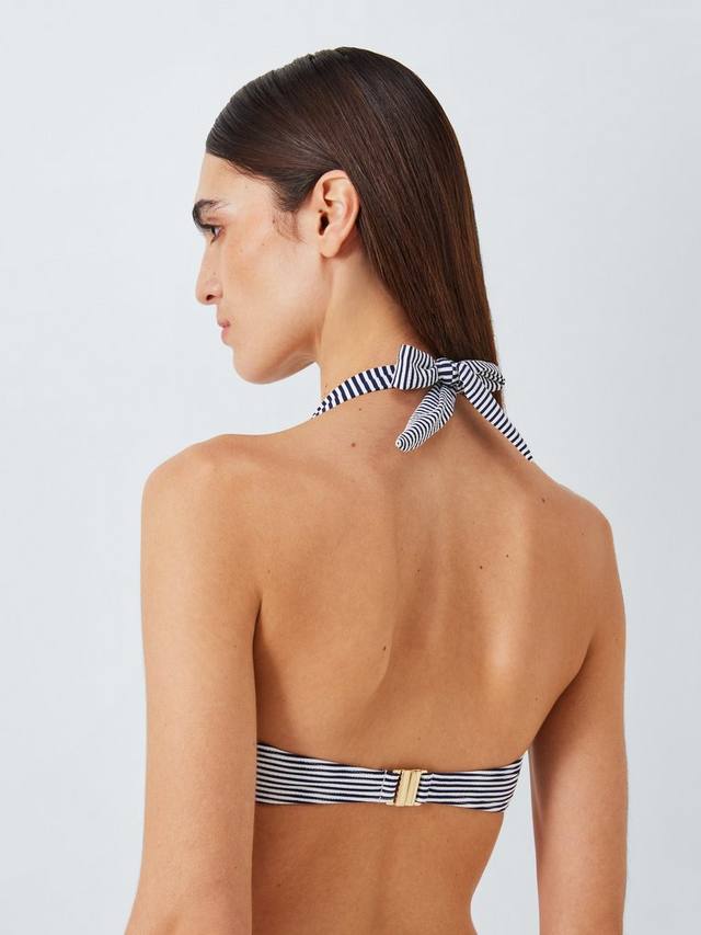 В этом сезоне наш топ-бикини с завязками обновлен из мягкой ткани сирсакер с яркими синими полосками. Разработанный, чтобы обеспечить вам поддерживающую посадку с помощью встроенных поддерживающих косточек и гладких чашек с подкладкой, мы создали этот предмет одежды, чтобы вы могли носить его по-своему, попробуйте завязать его на спине, чтобы создать форму бандо без бретелек, или застегнуть бретели на шее, создав топ-слинг на бретельках через шею, и сочетайте с нашими подходящими плавками-бикини.