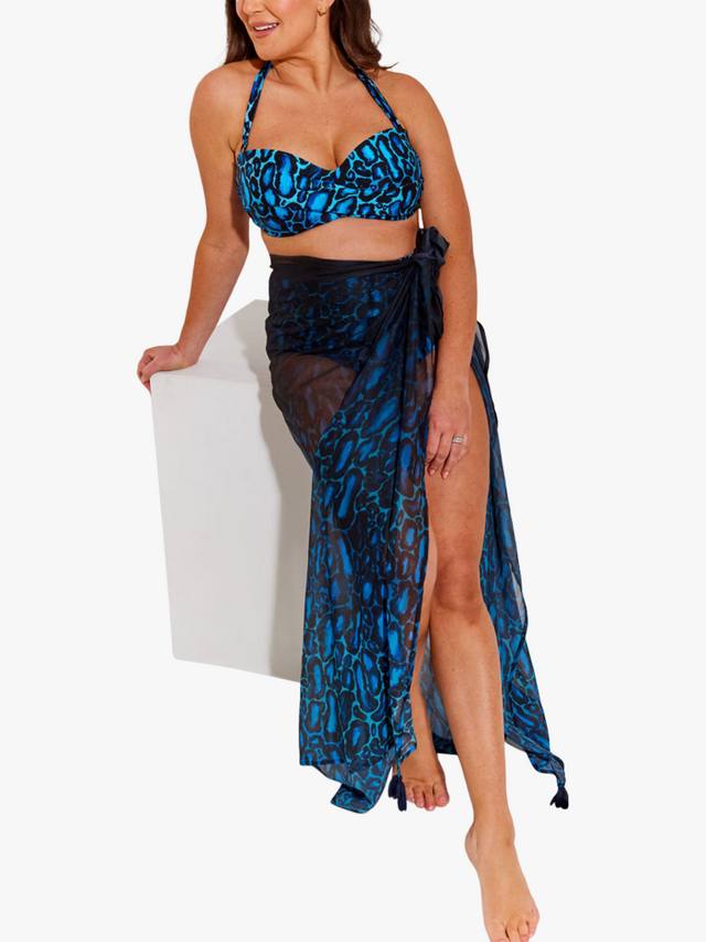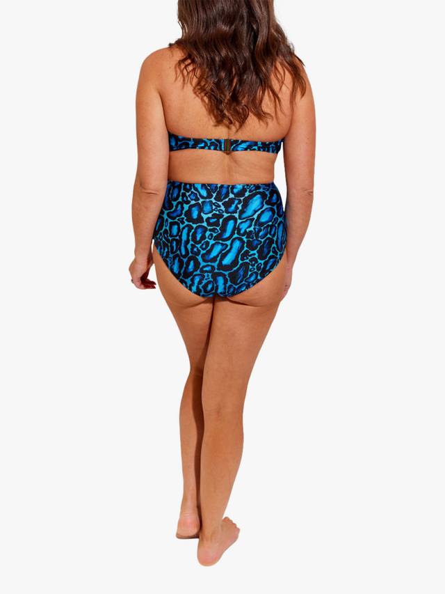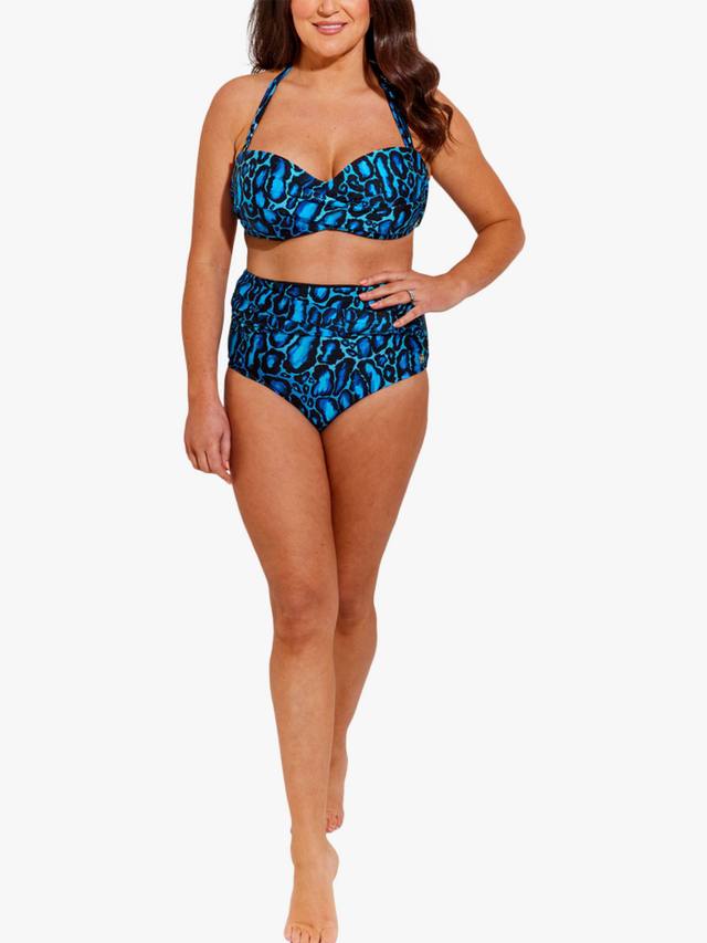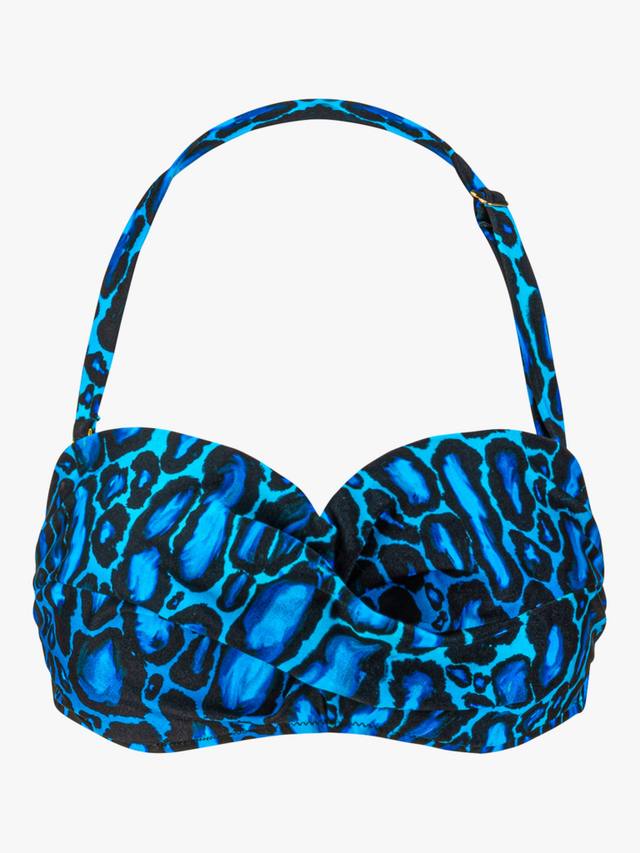 Привлекательный бикини-топ-бандо Serengeti Twist от Seasprays с красивым сине-черным леопардовым принтом оснащен косточками для дополнительной поддержки и комфорта, съемной бретелькой-халтер и металлической застежкой сзади. Дополните свой шикарный праздничный образ плавками Serenegti с высокой талией.