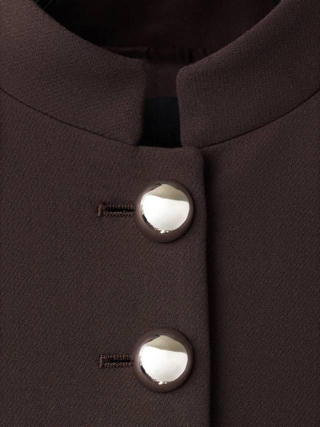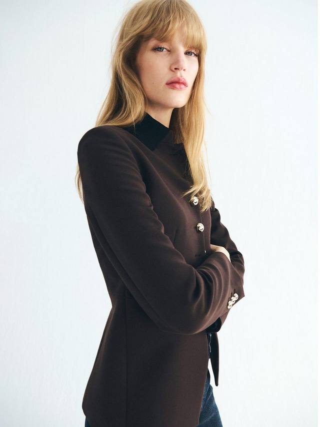 Этот приталенный блейзер придаст вашему дню четкую структуру, позволяя вам с одинаковой уверенностью отправляться на встречи и совещания. Высокий ворот и аккуратная застежка на пуговицы сохранят ваш элегантный вид, а удобная посадка обеспечит комфорт на протяжении всего дня.