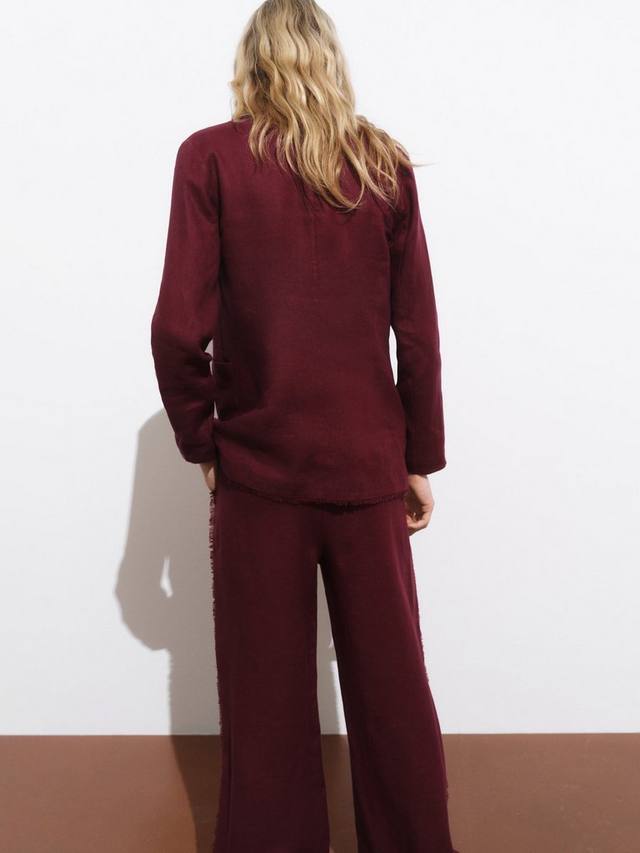 Этот однобортный пиджак привнесет четкие линии и элегантные пуговицы в ваш образ, сохраняя ощущение прохлады и уверенности. Изготовлен из льна с бахромой по низу для комфорта и удобства. Носите с подходящими брюками.