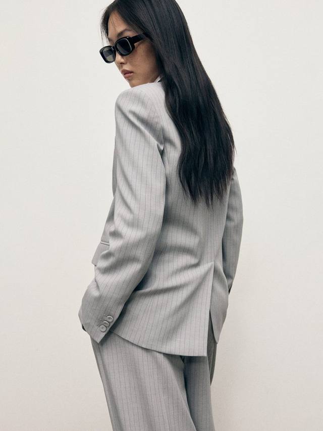 Этот блейзер от Mango, аккуратно скроенный для создания строгого образа, имеет стандартную длину.