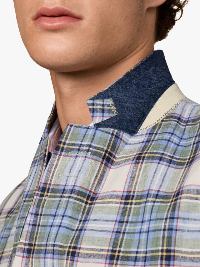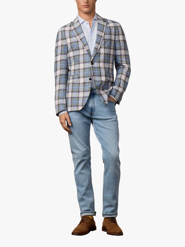 Этот элегантный блейзер Hackett London сшит из чистого льна с клетчатым узором мадрас. Имеет две пуговицы, отложной воротник, манжеты на пуговицах и карманы с клапанами. Без подкладки для лучшей воздухопроницаемости.