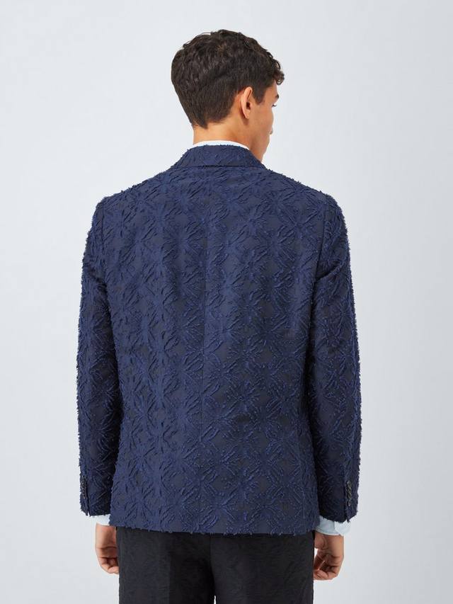 Однобортный пиджак из текстурированной хлопковой ткани с жаккардовым узором. Удобная подкладка, отложной воротник, два передних кармана с клапанами и один прорезной карман на левой груди.